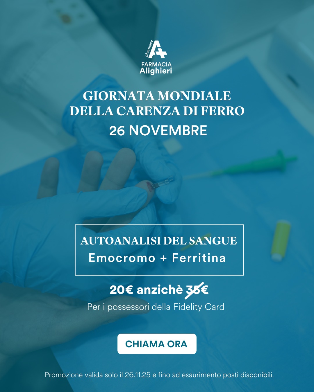 Per il mese di novembre, la Farmacia Alighieri dedica un’attenzione speciale alla prevenzione, con due iniziative pensate per aiutarti a monitorare in pochi minuti sia la salute del sangue sia il benessere cardiovascolare e lo stato infiammatorio generale. Un’occasione concreta per fare il punto sulla tua salute, capire se è necessario approfondire con il medico e adottare per tempo piccoli cambiamenti nello stile di vita.